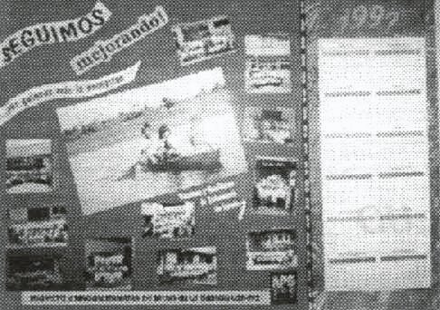 Afiche con las fotos de los talleres realizados en 1996 y niños bogando en el río (Agotados)