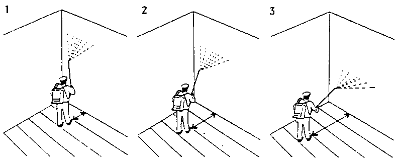 Depending on the height and size of the area being treated, manually operated or motor-driven knapsack or mobile pump sprayers with a capacity of between 10 and 100 litres are used The latter are particularly recommendable for the treatment of the roof area in large stores illustrations of some of the most