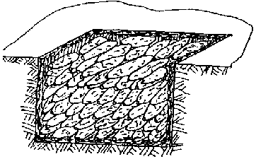 A typical storage facility made in the fields is the trench silo. To make this, a pit approximately corresponding to the expected volume of yams to be harvested is excavated. The pit is lined with straw or similar material (NWANKITI and MAKURDI, 1989). The tubers are then stored on the layer of straw either horizontally on top of each other or with the tip vertically downwards beside each other So far it is not known whether the method of storing - horizontally or vertically - influences storage behaviour.