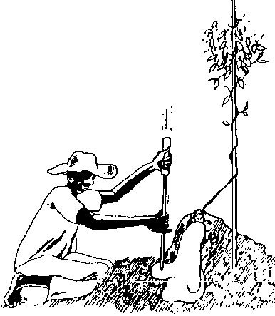 Fig. 5 The technique of tying the individual yam tubers up in the yam barn (Source: ASIEDU, 1986)