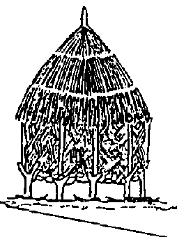 The "tonneau" can be compared to a large barrel and is erected on a low platform. The "tonneau" consists of a wooden frame in which mats are stretched. The "tonneau" is open at the upper edge and is closed by a conical roof (Fig. 18). It is often constructed to a height of more than 2 meters. This system is also open and allows air exchange between the stored produce and the atmosphere.