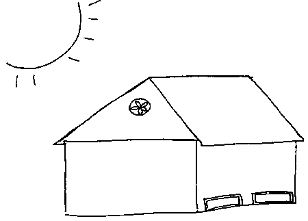 The packinghouse illustrated below is made with walls of wire mesh that hold charcoal. By moistening the charcoal with water each morning, the structure will be evaporatively cooled during the day.