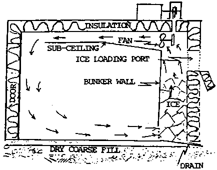 Ice can be used as a bunker source of refrigeration (used by passing air through a bank of ice and then through the commodity) or as top ice (laid directly in contact with the product). Ice can cool a commodity only if it melts, so good ventilation is necessary for effective cooling.