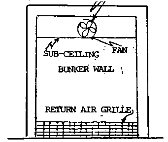 Back of Room - an electric fan motor is commonly mounted inside the cold room, fan capacity (CFM= cubic feet/min) should at least equal the empty volume of-the room (i.e. 12x8x8=768 cu ft., so, 768 CFM in minimal. more is better. for this room)