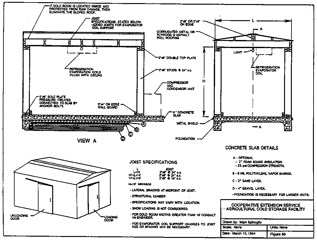 Illustrated here is a model of a small-scale commercial C.A. storage room. Each component is labelled. For farther information on construction methods, materials, and costs, please refer to the source listed below.
