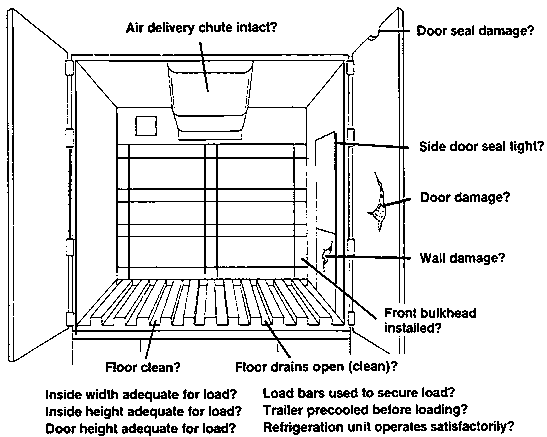 The condition of the inside of a refrigerated trailer affects its ability to maintain desired temperatures during transport. Handlers should inspect the trailer before loading, and check these features: