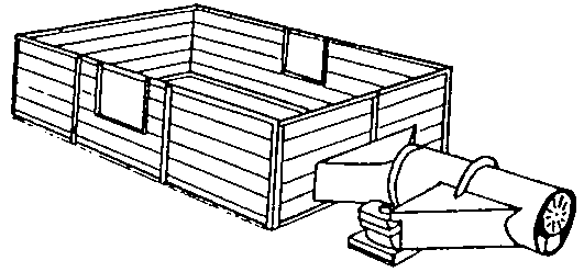 Direct drier similar to the above but built close to the ground, and usually able to hold only one layer of produce. |