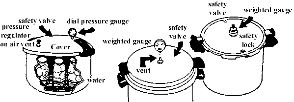 A pressure canner is recommended for processing low acid foods such as vegetables. A pressure canner is a specially made heavy pot with a locking lid, an inner rack and a steam vent in the kid. The vent can be adjusted using a weight, value or screw, depending on the type of canner. A pressure gauge registers the air pressure inside the canner. A dial gauge gives a reading of the actual pressure, while weighted gauges will rock gently when the canner is at the proper pressure. Ten pounds of pressure at 115 C (240 F) is recommended for canning vegetables.