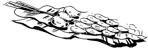 3. Spread slices out on a clean tray or banana leaves. Leave in the sun to dry for 2 to 3 days. Turn the slices over 2 or 3 times each day so that they dry evenly. If flies are a problem, cover the slices with netting.
