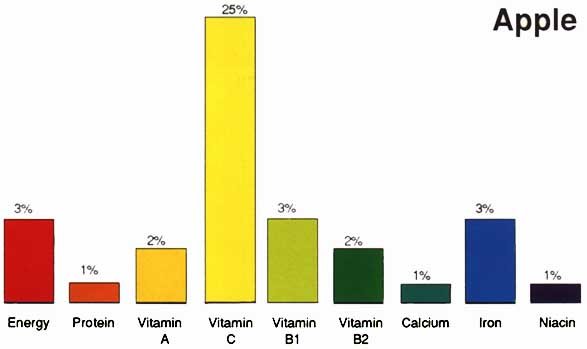 Percentage of daily needs of a child (1 - 10 yrs) filled by one medium-sized apple