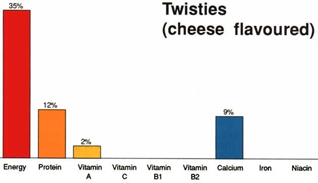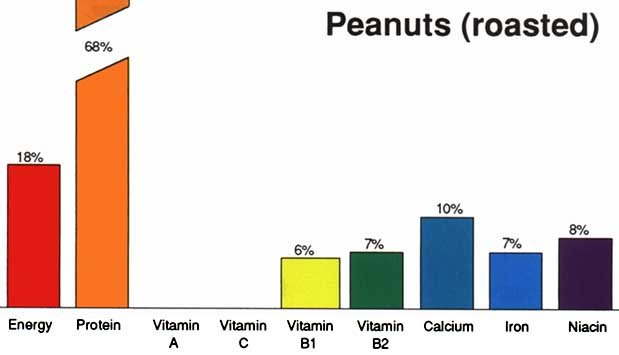 From the bar graphs, it can be seen that roasted peanuts are nutritious and better as a snack than flavoured snack foods such as cheese-flavoured snacks sold in shops.