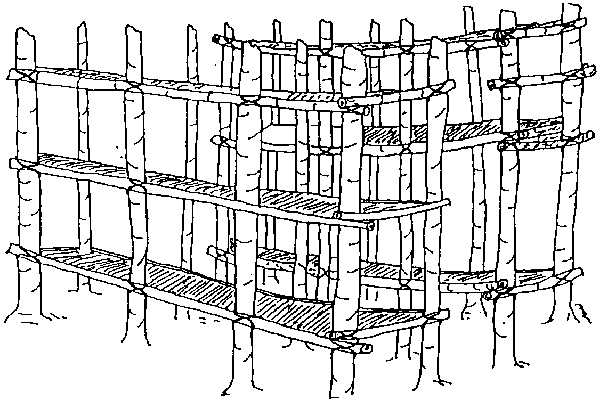 Figure 4.4 Simple wooden shelves for yam storage (NISPRI 1982)