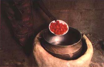 19. They are plunged immediately into cold water for a few minutes. Immersion in cold water after the boiling water helps to loosen the skin.