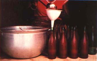 54. A small spoonful of lemon juice without pips goes into each clean, empty bottle.