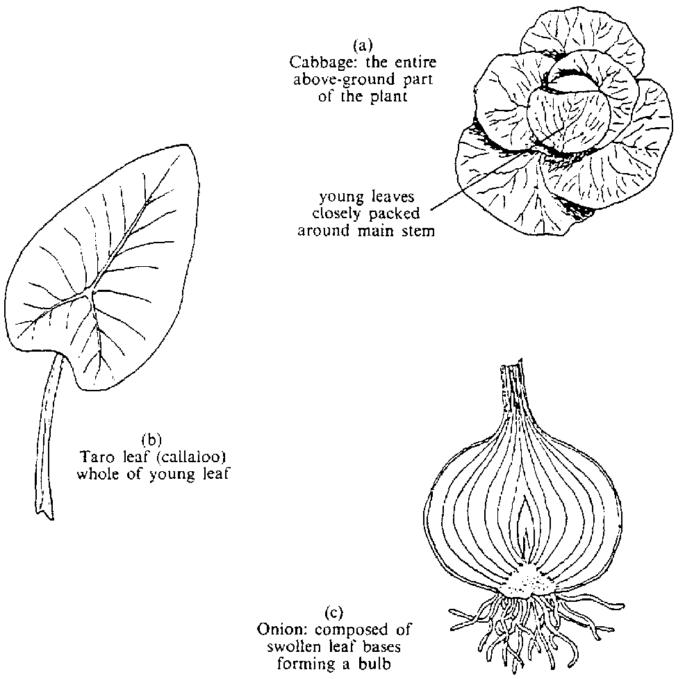 | Leaves only | Dasheen (callaloo), spinach | (Figure 4.3b) |