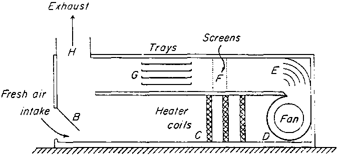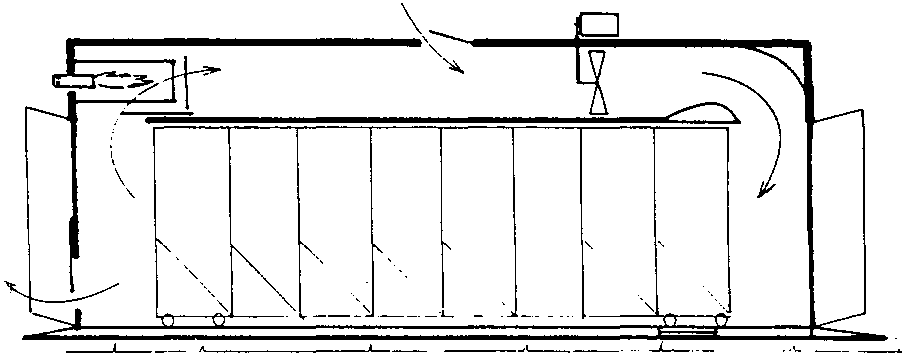 Figure 5.2.16 Tunnel dryer for fruit and vegetables. Capacity: 6 to 12 cars with 25 or 18 trays each