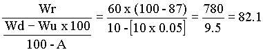 Rehydration ratio. If weight of the dried sample is 10 g (Wd) and the weight of the sample after rehydration is 60 g (Wr), rehydration ratio is: