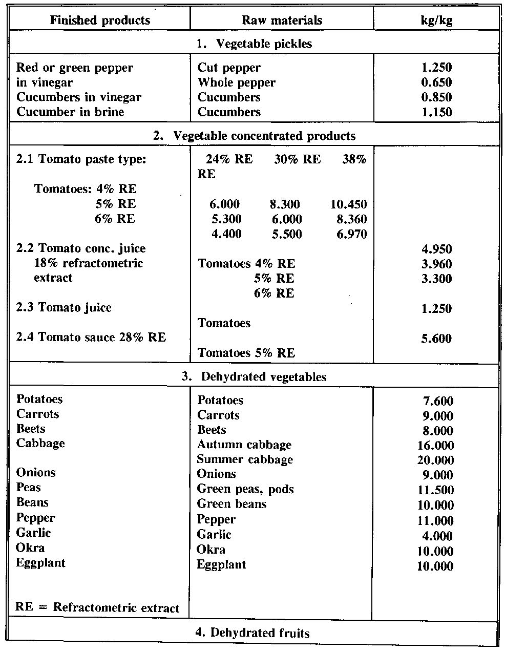 TABLE 11.7.2 Refractometric readings for natural tomato solids