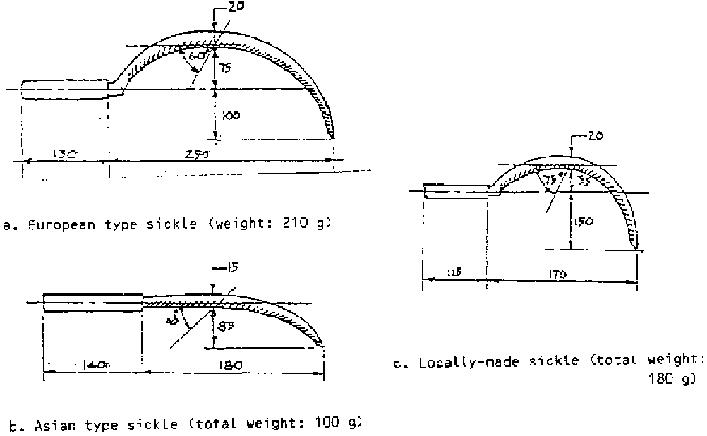 In conclusion, the introduction of the new type of sickle, where local culture permits it, improves productivity and indirectly reduces post-harvest losses.