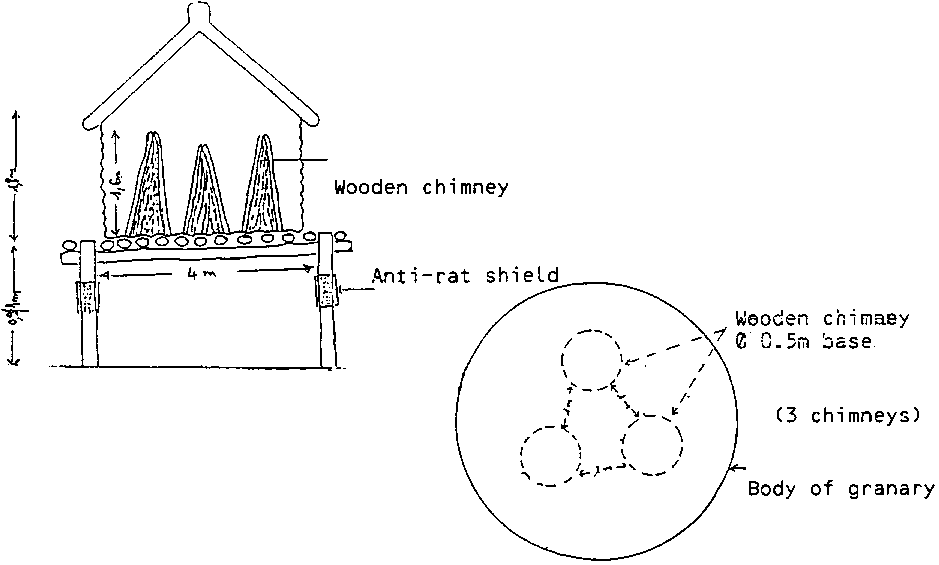 Figure 5.7 - Adaptation of a chimney on the floor of a traditional granary (Source: Afomasse, 1994)
