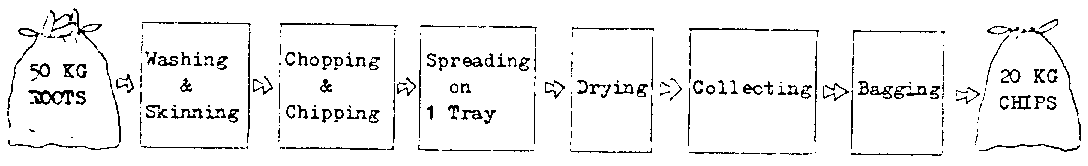 Again, cassava was considered to be the answer to this problem. In both cases, i.e. flour for bread or pellets for animals, cassava has to be processed as dried chips or slices. It was in this context that the Ministry of Agriculture in Fiji supported by the Root Crops Development Project - planned a pilot project to investigate the technical feasibility and the economic viability of cassava chipping and drying technologies