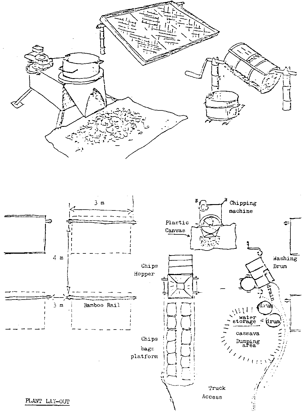 Early studies conducted by CIAT (Centro Internacional de Agricultura Tropical) showed that cassava drying could be drastically improved by placing chips on inclined mesh trays raised above the ground.