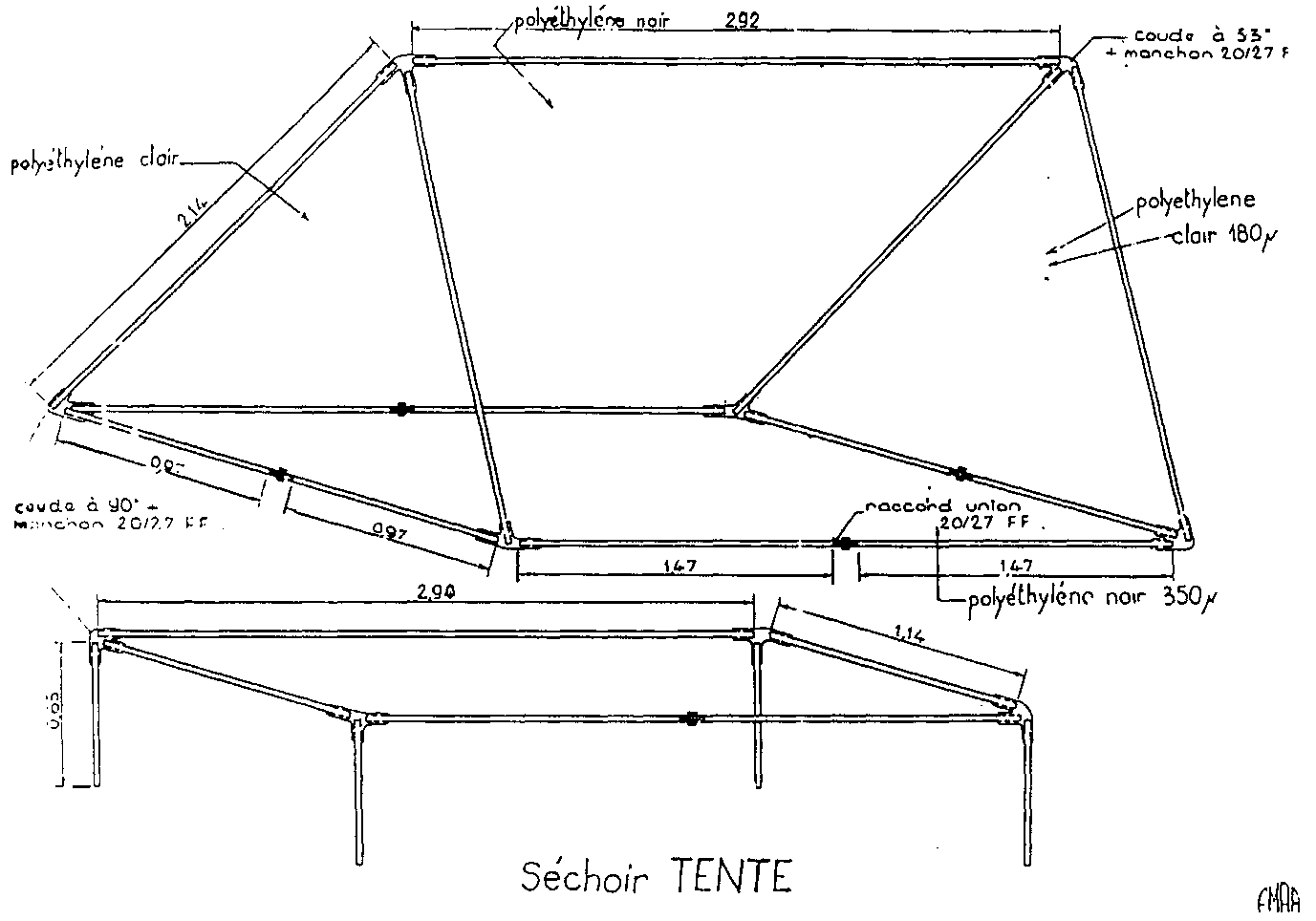 Ce séchoir a la forme d'une tente canadienne composée :
