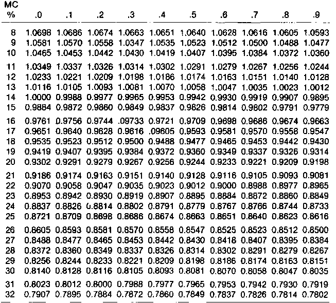 % MC | 10 | 12.0 | 14.1 | 16 | 17.9 |