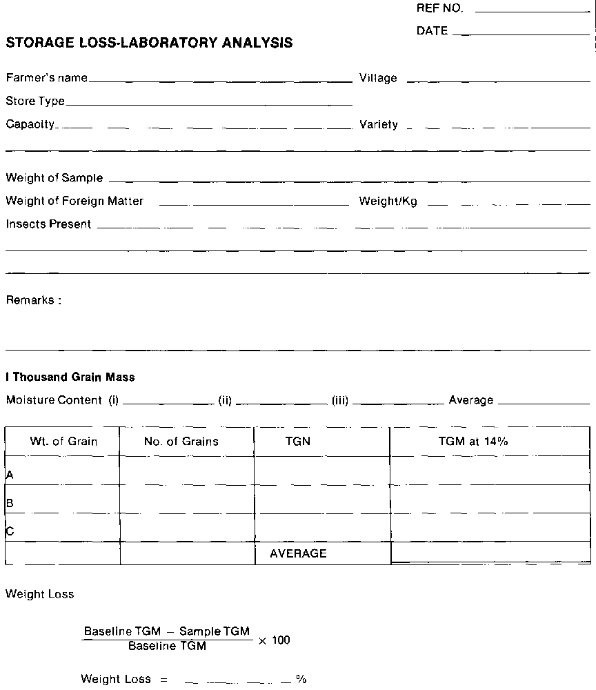 It is often necessary to make loss estimates in the middle of the storage period when no baseline has been previously determined. It also frequently occurs that in rural areas, different varieties of grain are grown under different conditions. This may affect the size of grains and consequently the volume/weight ratio.