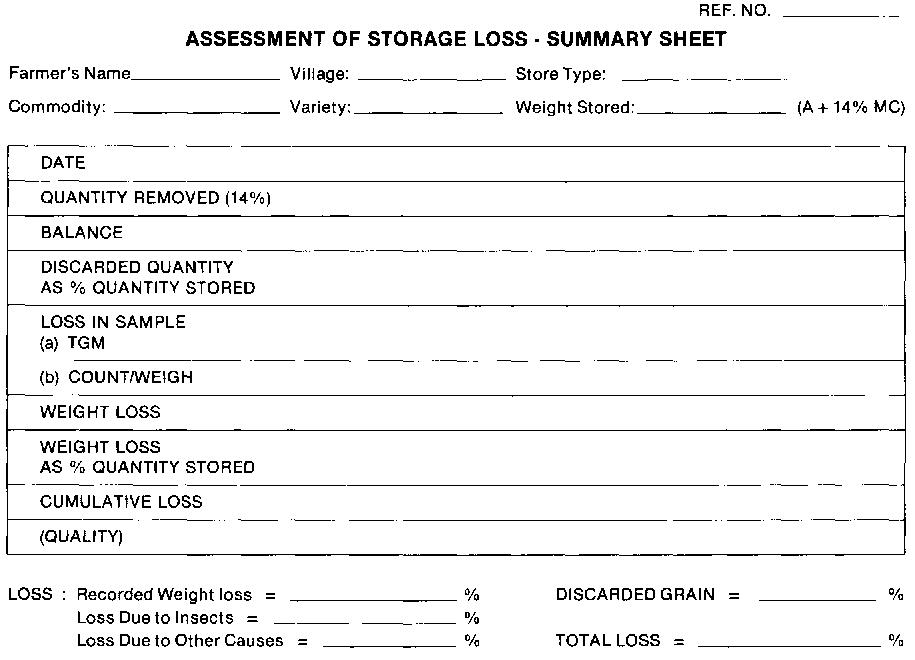 (i) A SUMMARY SHEET (Form SV) will be used to assemble all relevant data for the calculation of total weight loss. This summary sheet can be completed as and when the data are available. All weights will be expressed on a 14% moisture content basis.