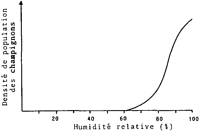 En cas d humidité élevée de la marchandise stockée il y a danger de formation de champignons et de moisissures. Les champignons se forment lorsque l'humidité relative dépasse les 65 a 70%. En d'autres termes, quand on veut stocker des denrées alimentaires en toute sécurité durant une période prolongée, les taux d'humidité admissibles au niveau de ces denrées sont ceux qui correspondent du point de vue équilibre à un taux d'humidité relative de l'air de 65 à 70%.