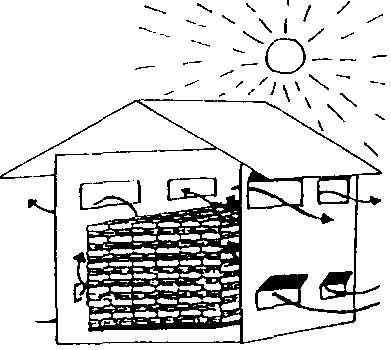 N'aérez le magasin que pendant la journée, en profitant des heures d'ensoleillement, c'est- a- dire du moment ou, comme l'expérience l'a montré, le taux d'humidité de l'air est au plus bas! Ceci correspond au laps de temps compris entre 11 et 15 h. bien que l'on puisse parfois aller audelà dans les régions sèches.