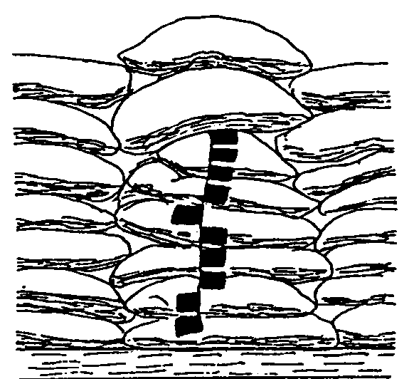 -Ouvrez les conteneurs les uns après les autres et fixez les chapelets de sachets à intervalles réguliers à la pile en enfonçant à chaque fois un sachet entre deux sacs (cf. illustration de la section 9.2.1.5, Application).