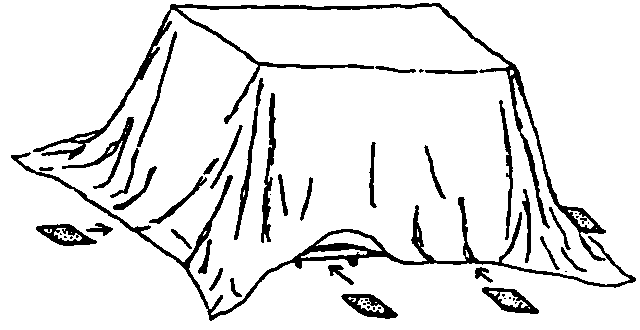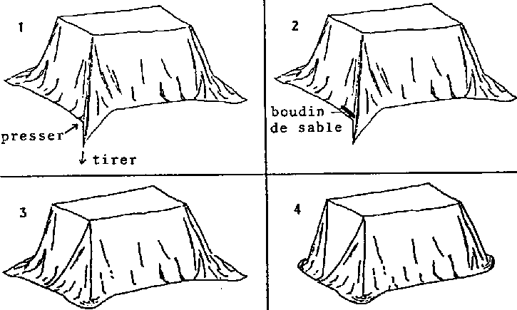 -Veillez à ce que la bâche repose bien à plat sur le sol!