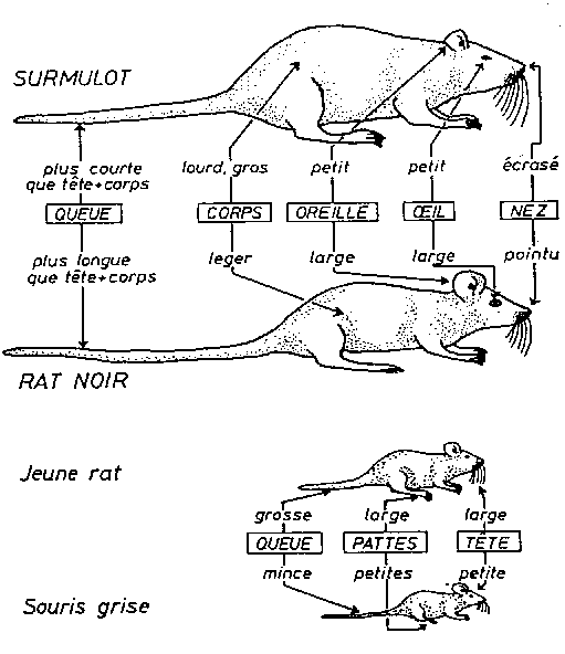 Les caractères distinctifs des principales espèces de rongeurs nuisibles aux denrées stockées figurent dans le tableau et l'illustration que l'on trouvera ci après.