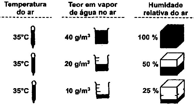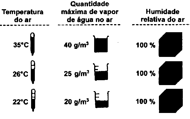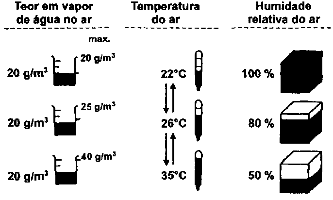 De acordo ao já mencionado, a taxa de saturação do ar depende da temperatura, o que significa que quanto mais alta for a temperatura, mais água pode ser absorvida pelo ar: