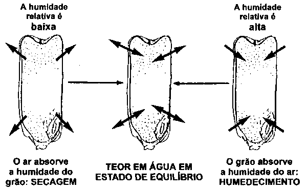 O teor em humidade do produto armazenado e a humidade relativa do ar ambiente no armazém tentam encontrar um estado de equilíbrio. Dependendo da humidade relativa prevalecente, o produto armazenado libera humidade àatmosfera (secagem) ou absorve humidade da atmosfera (humedecimento) até alcançar um estado de equilíbrio.