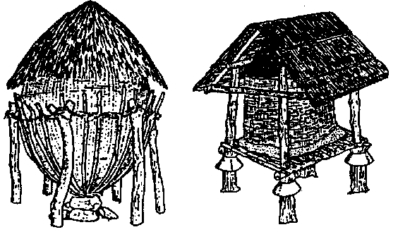 Às vezes, encontra-se a colheita suspensa em armações ou debaixo dos tectos das casas. Neste último caso, o fogo da cozinha serve para secar a colheita e repelir os insectos.