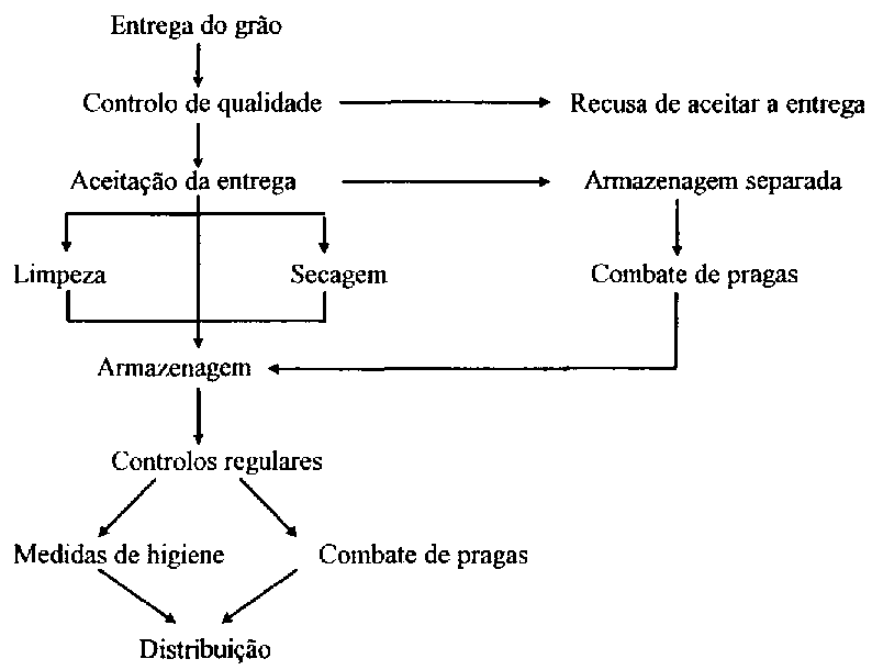 - da execução de medidas necessárias que permitem manter a qualidade dos produtos armazenados (medidas de higiene, aplicação de insecticidas, fumigação, combate dos roedores, arejamento controlado)