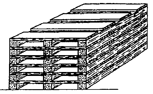 - Para cada camada, deve-se começar dos quatro lados trabalhando em direcção ao centro da pilha. Os espaços livres que podem resultar assim no centro das camadas superiores não afectam a estabilidade da pilha.