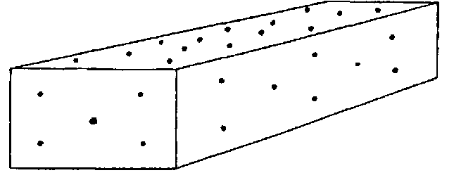 Um encarregado de armazém com experiência vai estar em condições de estimar a distribuição aproximada sem calcular os tamanhos de cada superfície. A ilustração seguinte dá uma ideia da distribuição dos pontos de tiragem de amostras nas superfícies individuais de uma pilha: