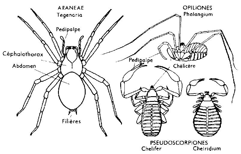 Les arthropodes sont caractérisés par un tégument dur formant une carapace divisée en anneaux ou segments du corps. En général au moins quelques segments, chez certains groupes tous les segments, portent des appendices articulés en nombre pair (pattes!). Seules quelques larves d'insectes sont apodes. Elles ressemblent à des vers, mais leur corps ne compte jamais plus de 14 segments. Chez les vers, le corps est ou bien non segmenté, ou bien, comme chez les vers de terre ou lombrics, formé d'un grand nombre de segments semblables. D'après le nombre des pattes, on peut classer les arthropodes des denrées entreposées dans les groupes suivants: