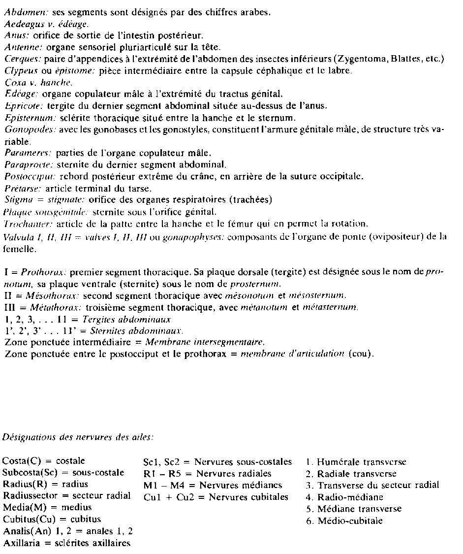 Les formes les plus varices de ravageurs des denrées se rattachent aux insectes. Il est nécessaire de connaître leur structure pour pouvoir les déterminer. Les insectes sont caractérisés, parmi les arthropodes, par leur corps divisé en trois parties: la tête, le thorax et l'abdomen (fig. 5)