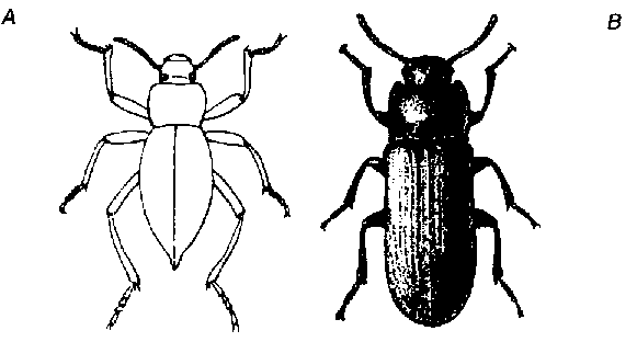 Fig. 61. A, Blaps sp.; B. Tenebrio molitor (d'après SCHRODER, BOGDANOV-KATJKOV).