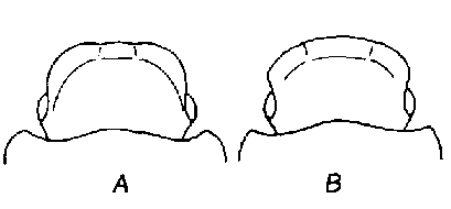 2. Face dorsale du pronotum ornée de 3 crêtes longitudinales (fig.53 B). Dents latérales du pronotum pointues et à peu près de même grandeur