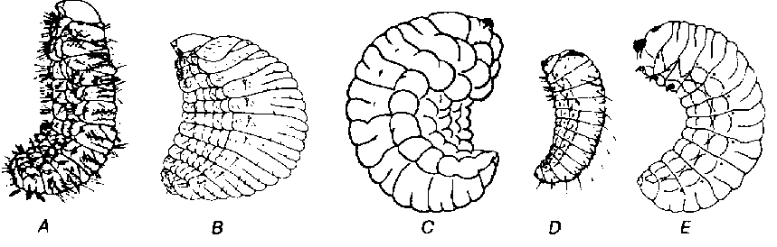 4. Larves plus ou moins ventralement incurvées
