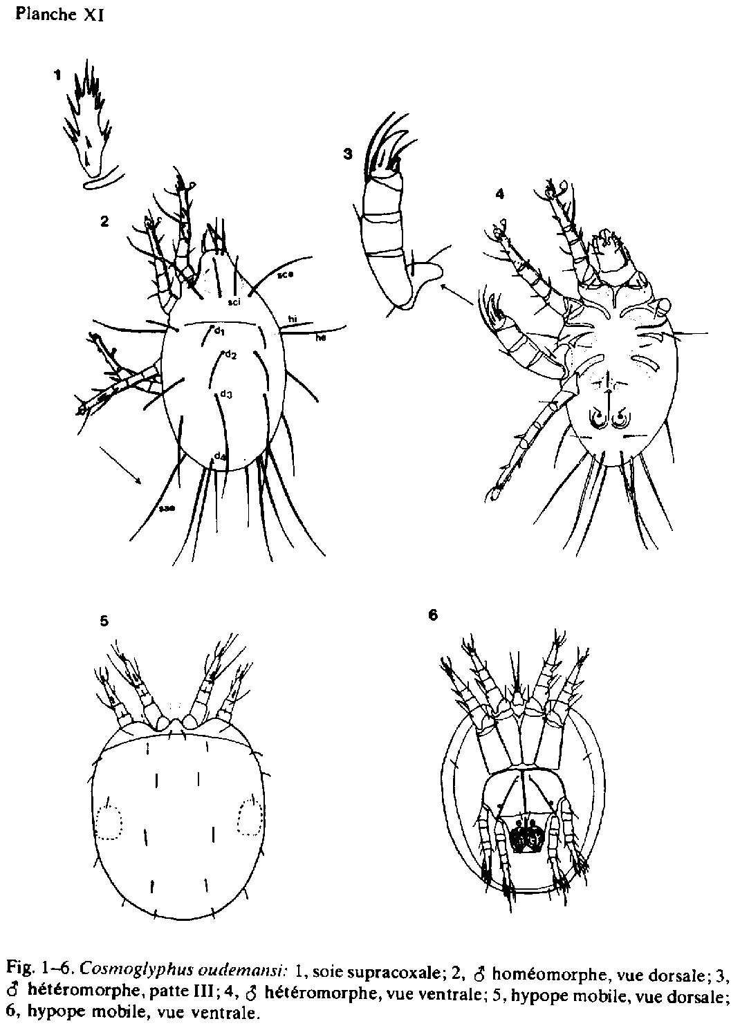 Fig. 1 - 6. Cosmoglyphus oudemansi: