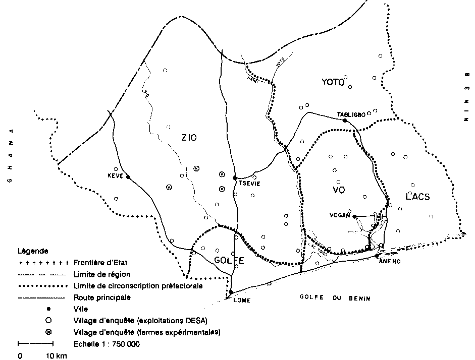 On a sélectionné comme région d'enquête une zone située dans le sud du Togo, qui se prêtait particulièrement bien à la forme d'enquête projetée. Les critères qui ont préside au choix de la région étaient les suivants:
