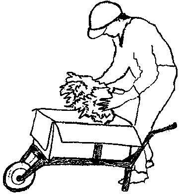 On peut se servir d'une petite brouette pour minimiser le travail de l'ouvrier. Les brouettes illustrées ci-dessous ont une seule roue avant; on peut les pousser le long de chaque rangée devant l'ouvrier.