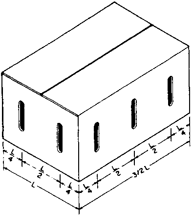 L'illustration ci-dessous montre la disposition recommandée des trous de ventilation pour les cartons employés pour garder les produits fermiers refroidis par ventilation forcée. Les trous de ventilation doivent représenter 5% de la surface totale et doivent être situés à une distance de 5 à 7,5 cm des coins. Il vaut mieux avoir quelques grands trous de ventilation (1 à 3 cm) que plusieurs petits trous.
